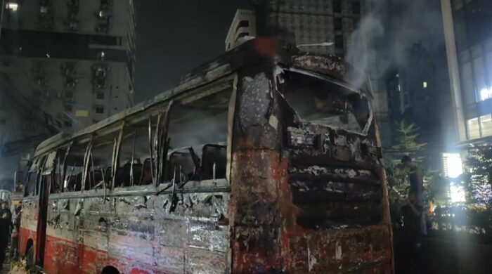 রাজধানীর মহাখালীতে চলন্ত বাসে আ/গু/ন