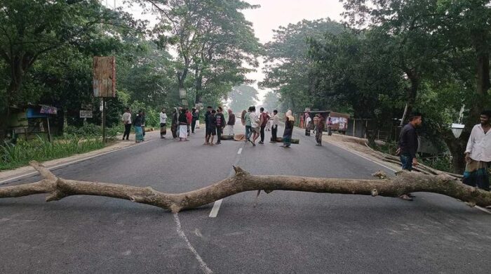 ভাঙ্গায় মহাসড়কে গাছের গুড়ি ফেলে রেখেছে, বাস চলাচল বন্ধ